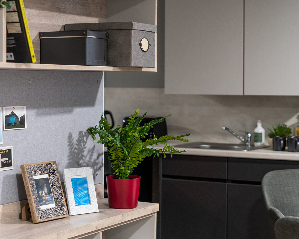 我们的单人公寓有足够的空间供您睡觉、学习与社交使用。每间公寓都有一个私人的浴室,舒适的双人床以及小厨房。时尚的设计以满足您的每一个要求。
